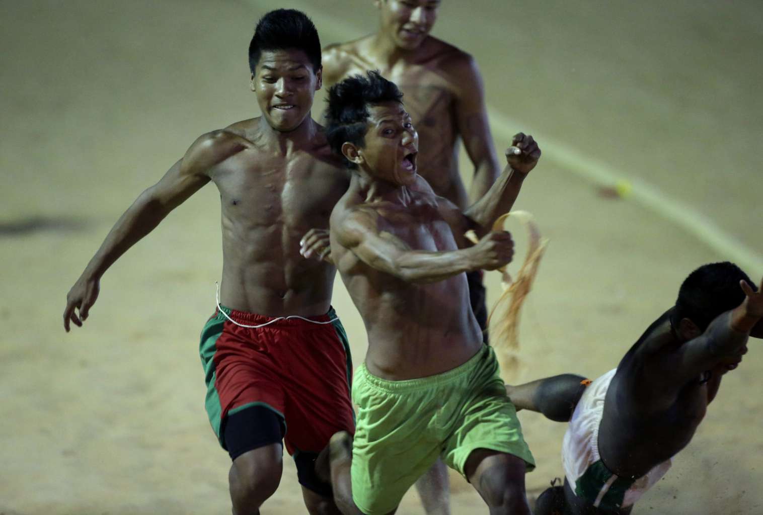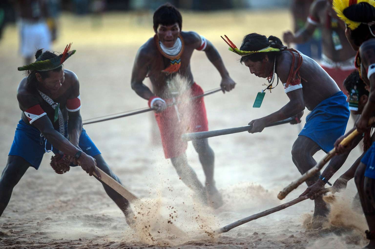 Indigenous men compete during the World Indigenous Games in Palmas, Tocantins, on Oct 24, 2015.