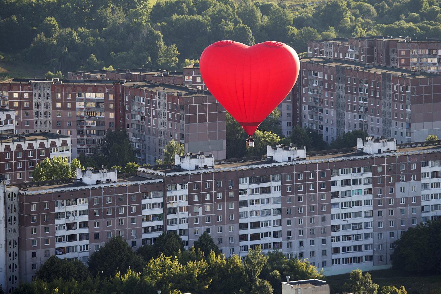 A hot air balloon seen at the Cup Hot Air event during the Air Sports festival titled 70 Years Of Peaceful Sky in Minsk, Belarus, on July 18, 2015.
