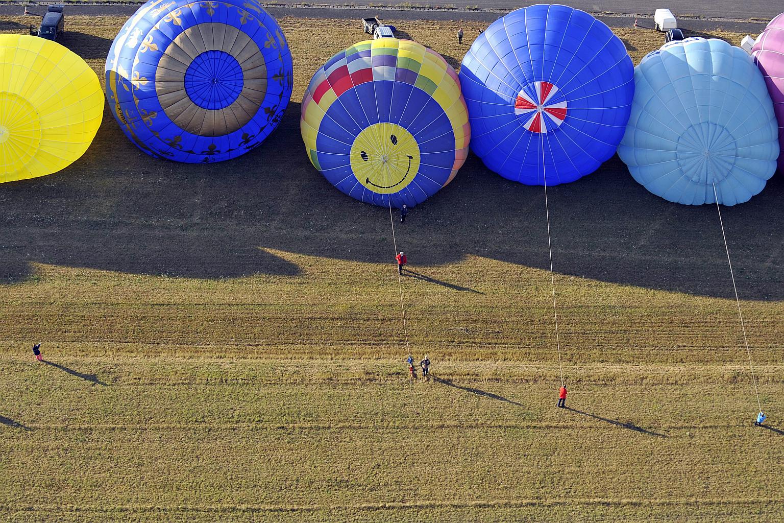 Hot air balloons waiting to take off during the international Lorraine Mondial Air Ballons festival, in Chambley-Bussieres, eastern France, on July 26, 2015.