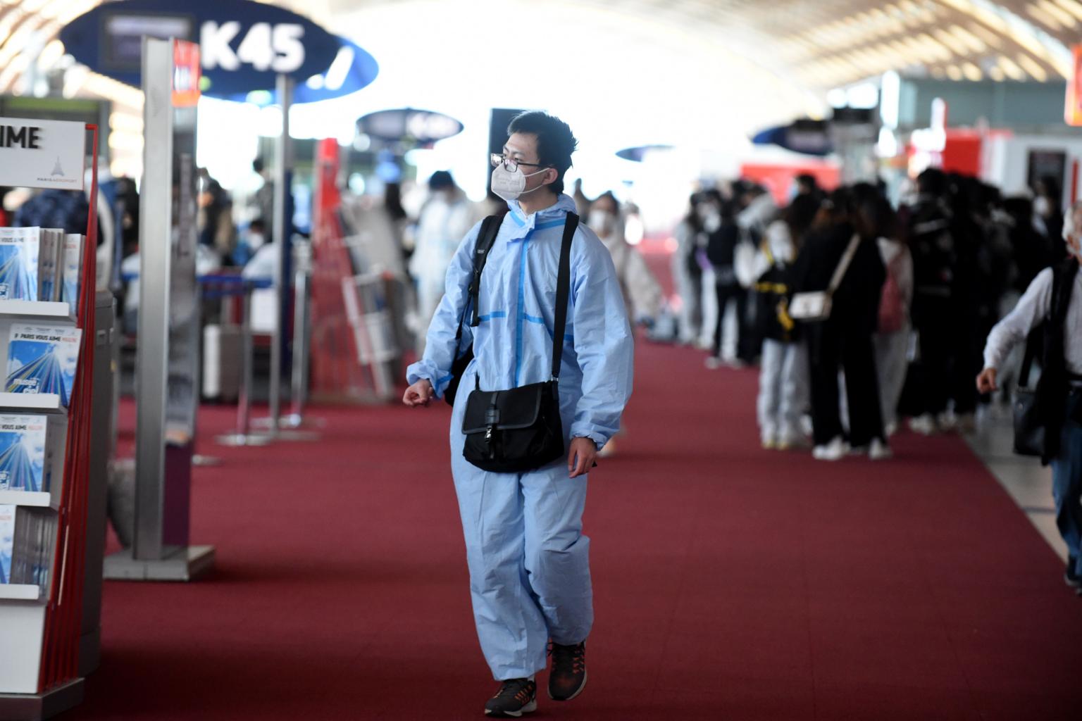 A passenger prior to boarding a China Southern Airlines flight at the Roissy-Charles de Gaulle Airport in Paris on May 12, 2020.