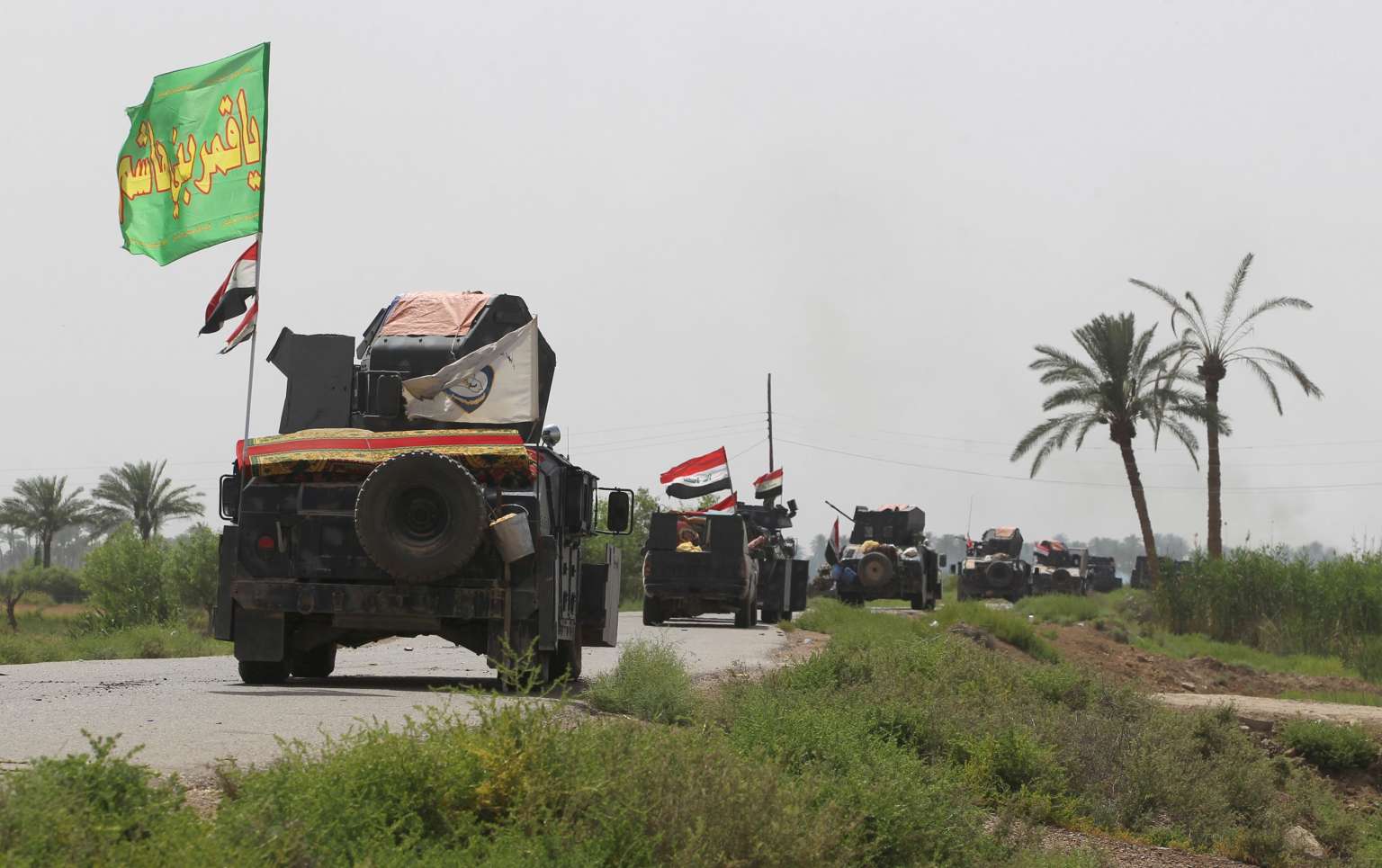 Iraqi government forces advance towards the centre of Saqlawiyah, north west of Fallujah, during an operation to regain control of the area from the Islamic State of Iraq and Syria group, on June 4, 2016.