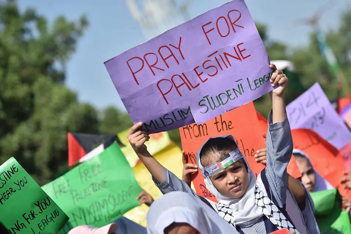 Protesters at a rally on Oct 7 in support of the Palestinian people in Karachi, Pakistan.
