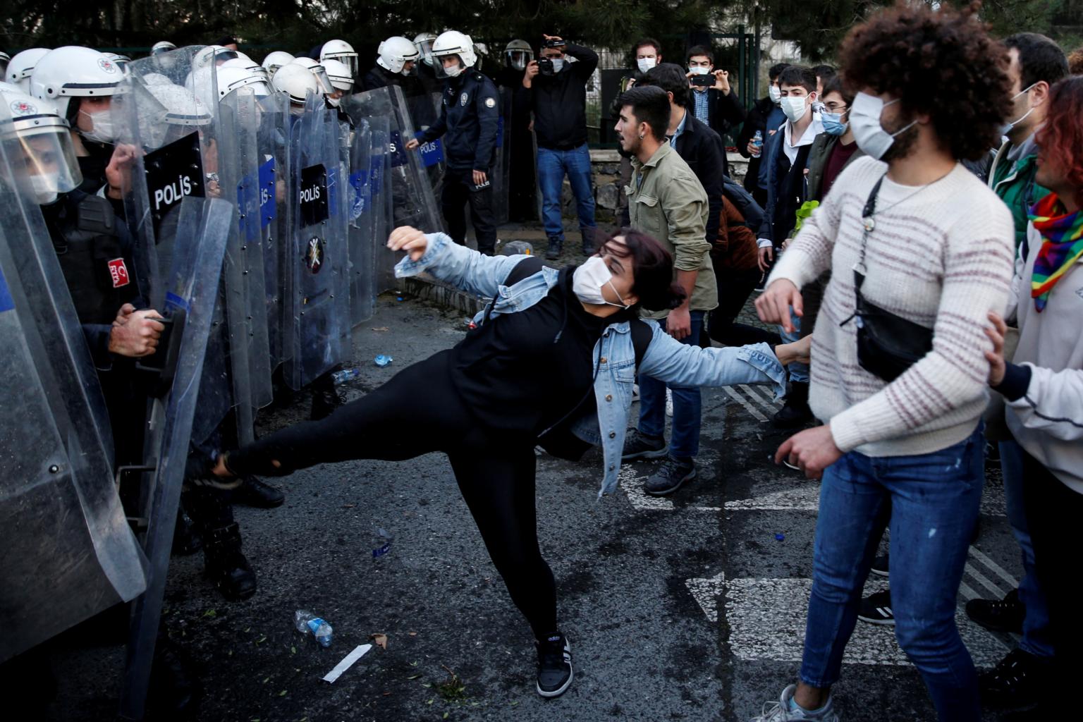At least 1,000 people demonstrated outside Bogazici University's campus on Monday (Dec 4) in response to a Jan 1 presidential decree in which Mr Erdogan appointed ally Melih Bulu as the public institution's rector.