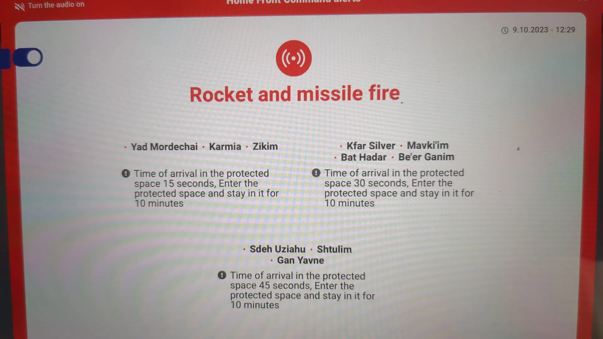 “I just got an alert that rockets and missiles were fired,” he said, as he shared screenshots of alerts about rockets and missiles from the country’s national emergency portal. The alerts came with the estimated time that the projectiles might hit certain parts of the country.
