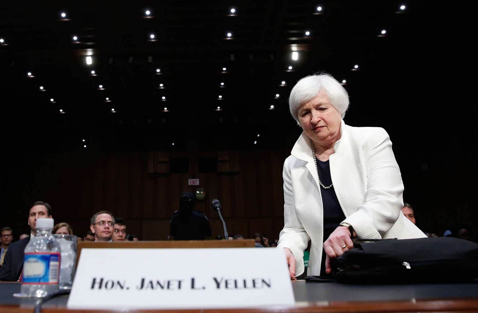 US Federal Reserve Board Chairwoman Janet Yellen arrives for testimony before the Senate Banking, Housing and Urban Affairs Committee on June 21, 2016 in Washington, DC.
