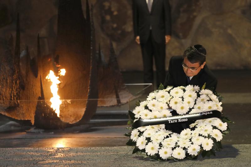JERUSALEM (AFP) - Japanese Foreign Minister Taro Kono on Monday (Dec 25) laid a wreath at Israel's Yad Vashem holocaust memorial in Jerusalem and called for stronger ties between the two countries.