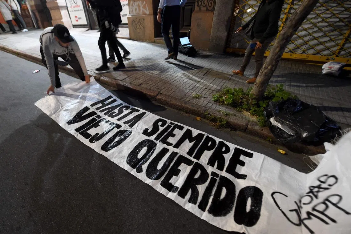 People gather outside the Movimiento de Participacion Popular party headquarters, following the death of Uruguay’s former President Jose “Pepe” Mujica at the age of 89, in Montevideo, Uruguay, on May 13.