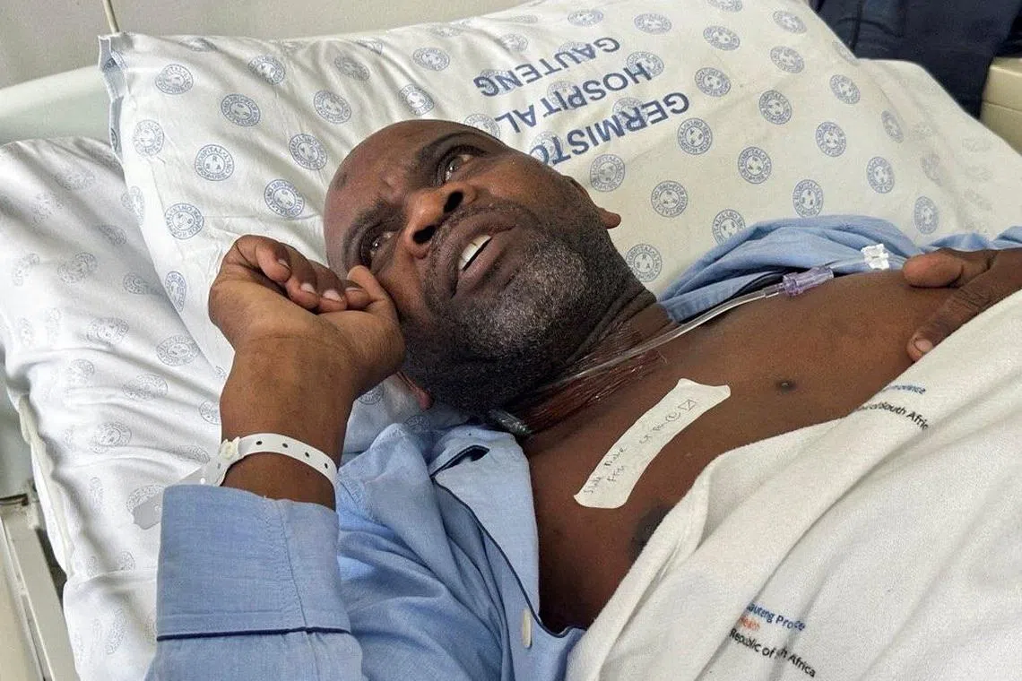 Mr Dube scrambled into his trousers and tried to climb out of his first-floor window, but he slipped on a satellite dish, fell and blacked out. An ambulance rushed him to the Bertha Gxowa Hospital in nearby Germiston.