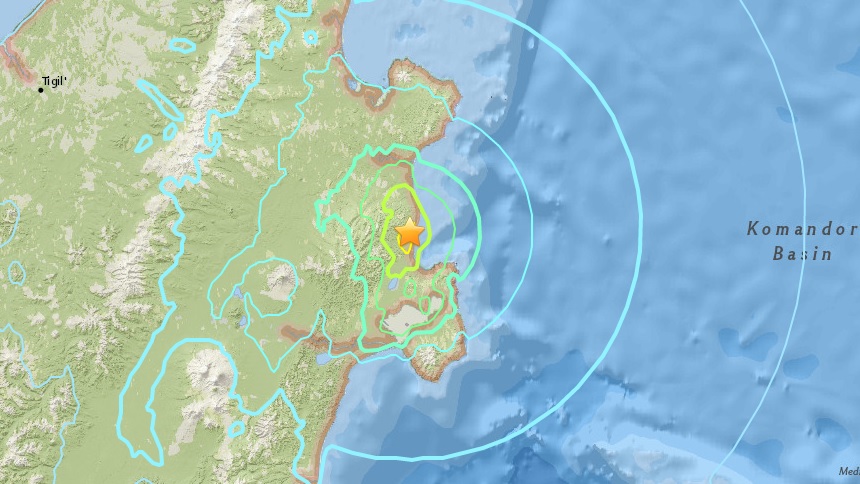 The quake struck at a depth of about 33 km just off the coast in the Bering Sea. It was originally recorded with a magnitude of 7.