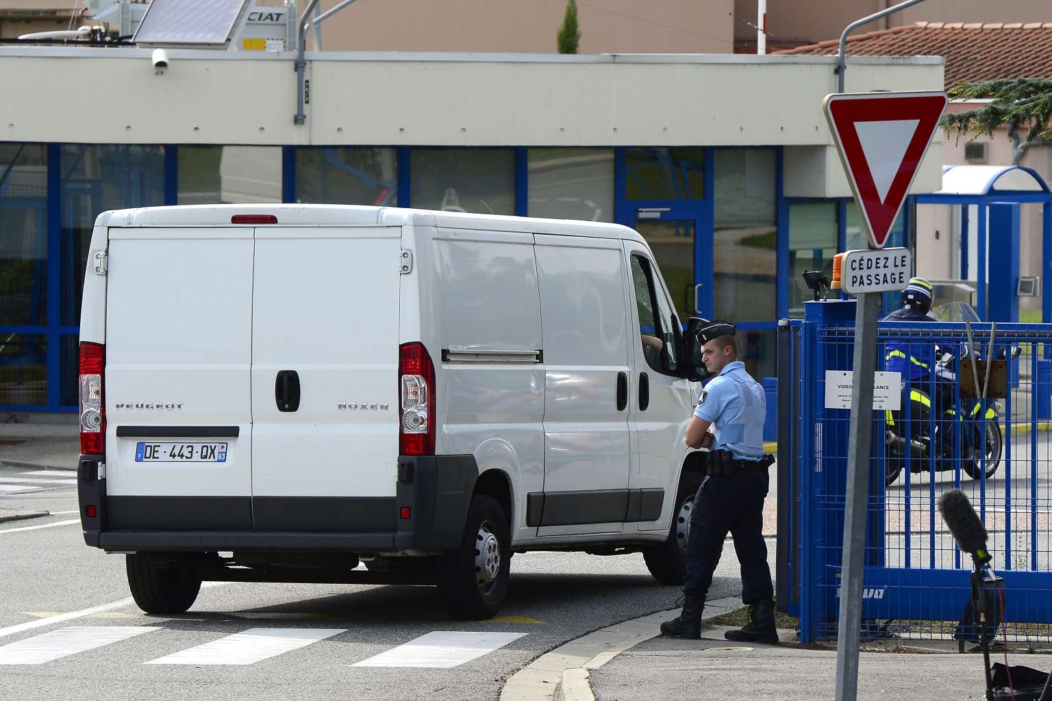 A van carrying a piece of airplane wreckage that washed ashore on Saint-Andre Reunion, arrives at the Directorate General of Armaments (DGA) Aeronautical Technical Centre in Balma, near Toulouse, France, on Aug 1, 2015.