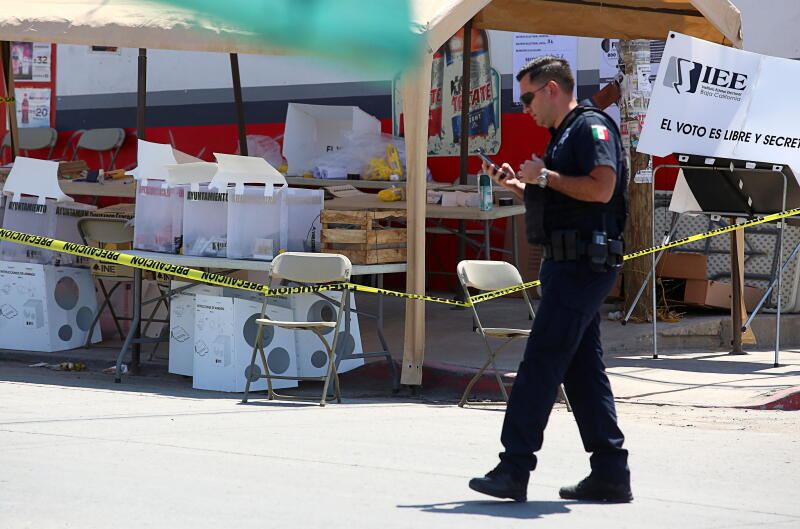 The polling station where a man threw a severed human head in Tijuana, Mexico, on June 6, 2021.