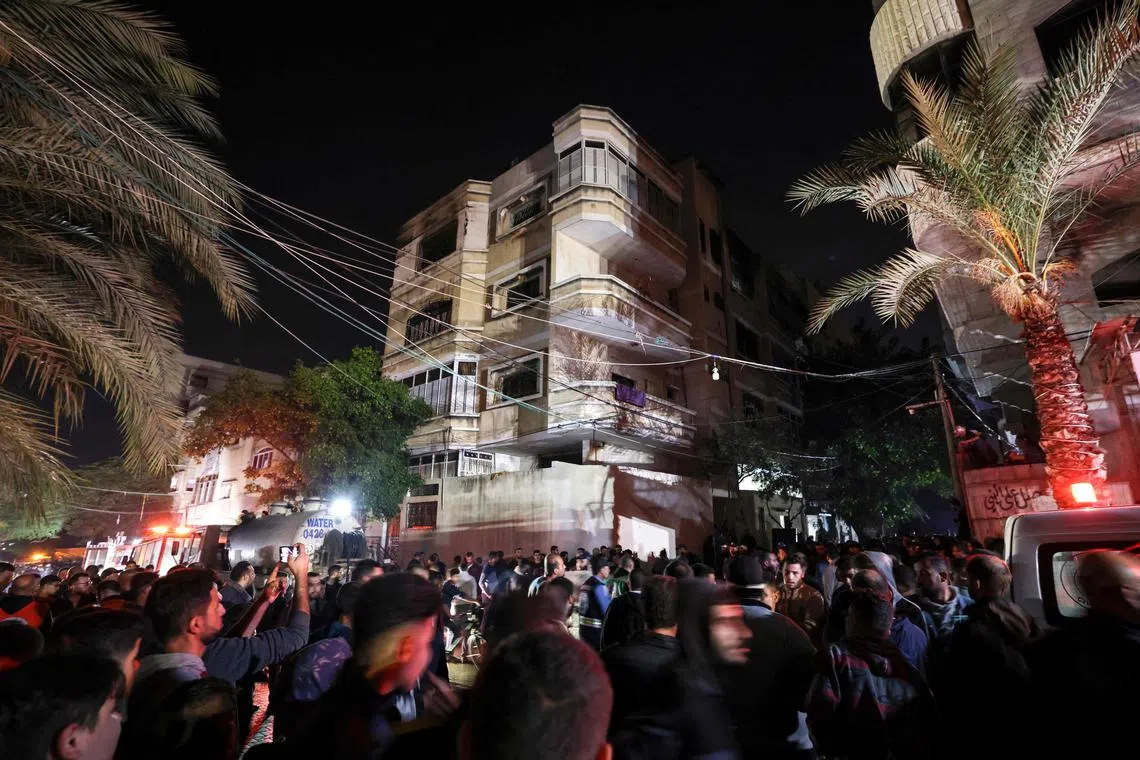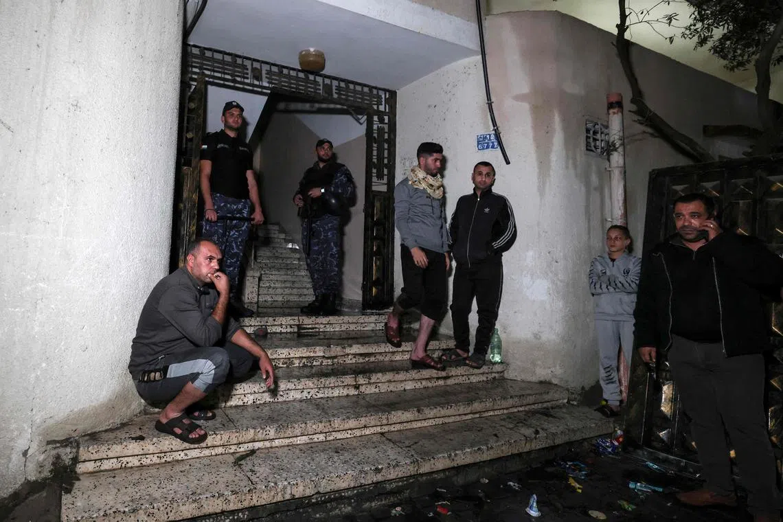 Palestinians at the entrance of a building where a fire broke out in one of the apartments in the Jabalia refugee camp on Nov 17.
