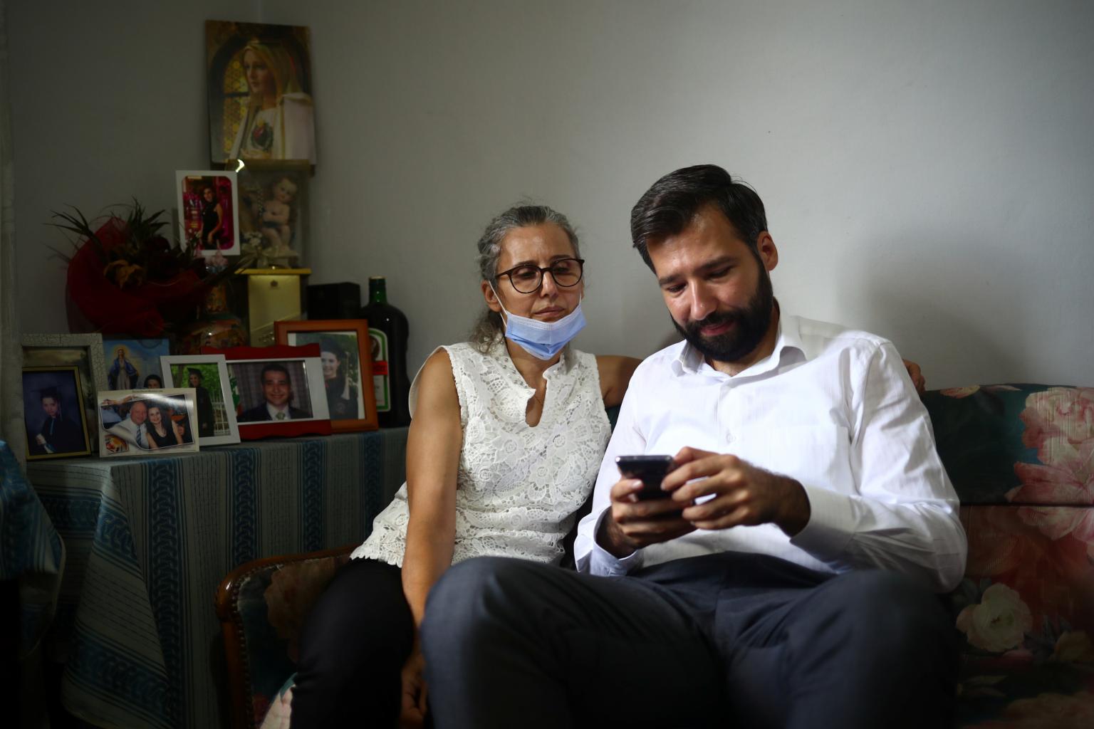 Elie Hasrouty and his mother Ibtissam in the family home in Beirut, Lebanon, on Aug 9, 2020.