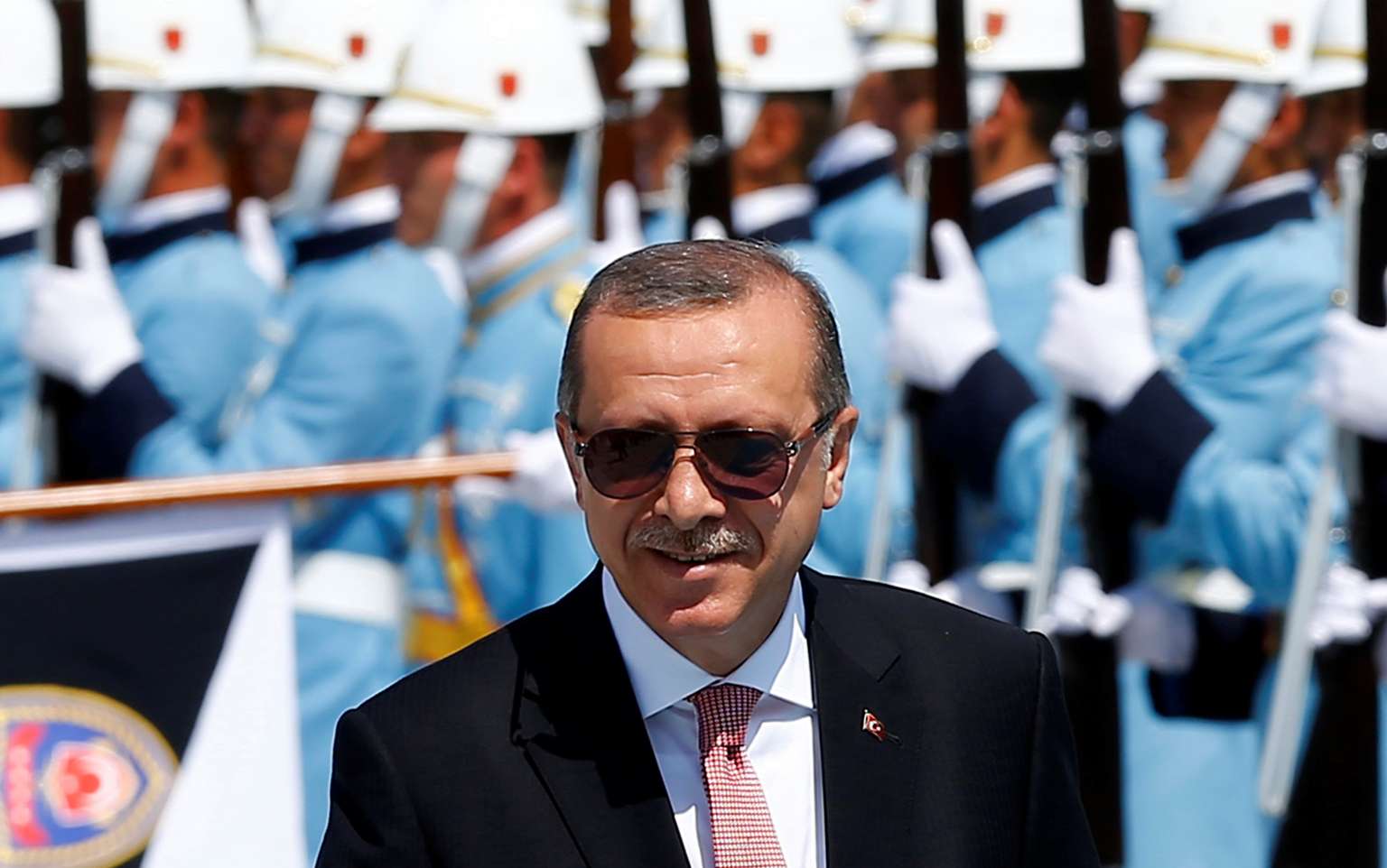 Turkish President Tayyip Erdogan reviews a guard of honour at the Presidential Palace in Ankara, Turkey, Aug 5, 2016.