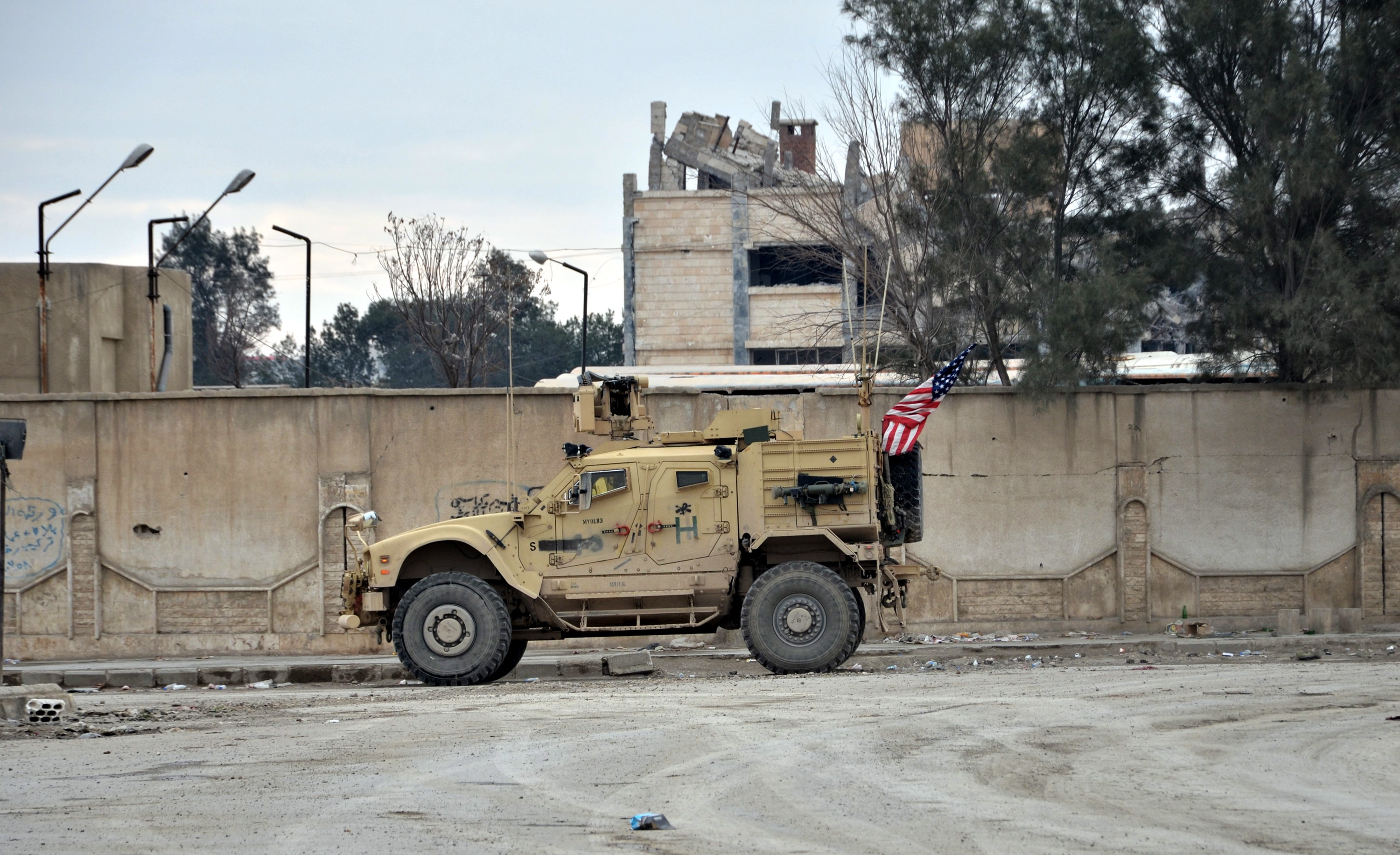 A US military vehicle involved in a search operation for ISIS fighters in Hasaka, north-eastern Syria, on Jan 24, 2022.
