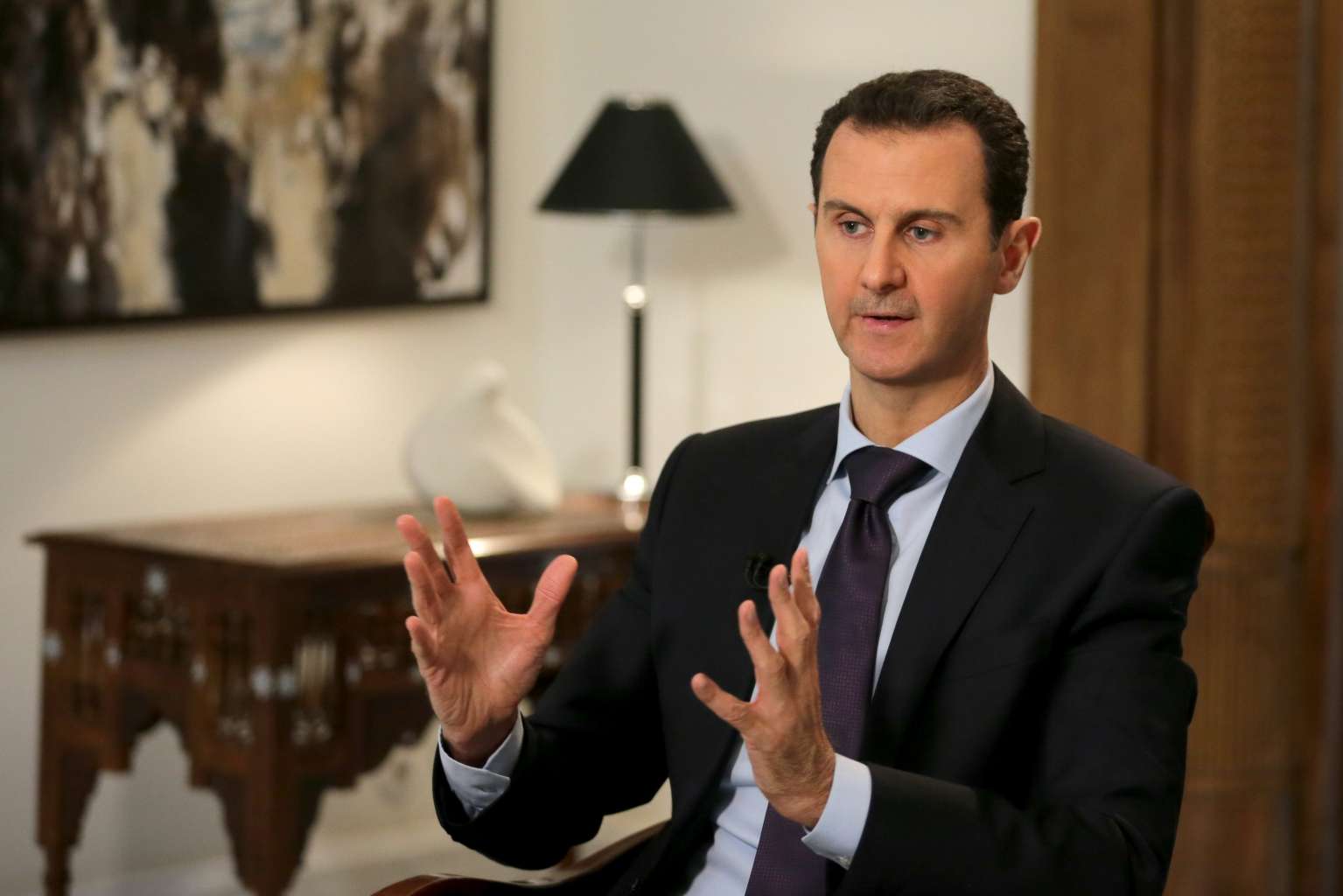 Syrian President Bashar Assad giving an interview to the AFP news agency, in Damascus, Syria.