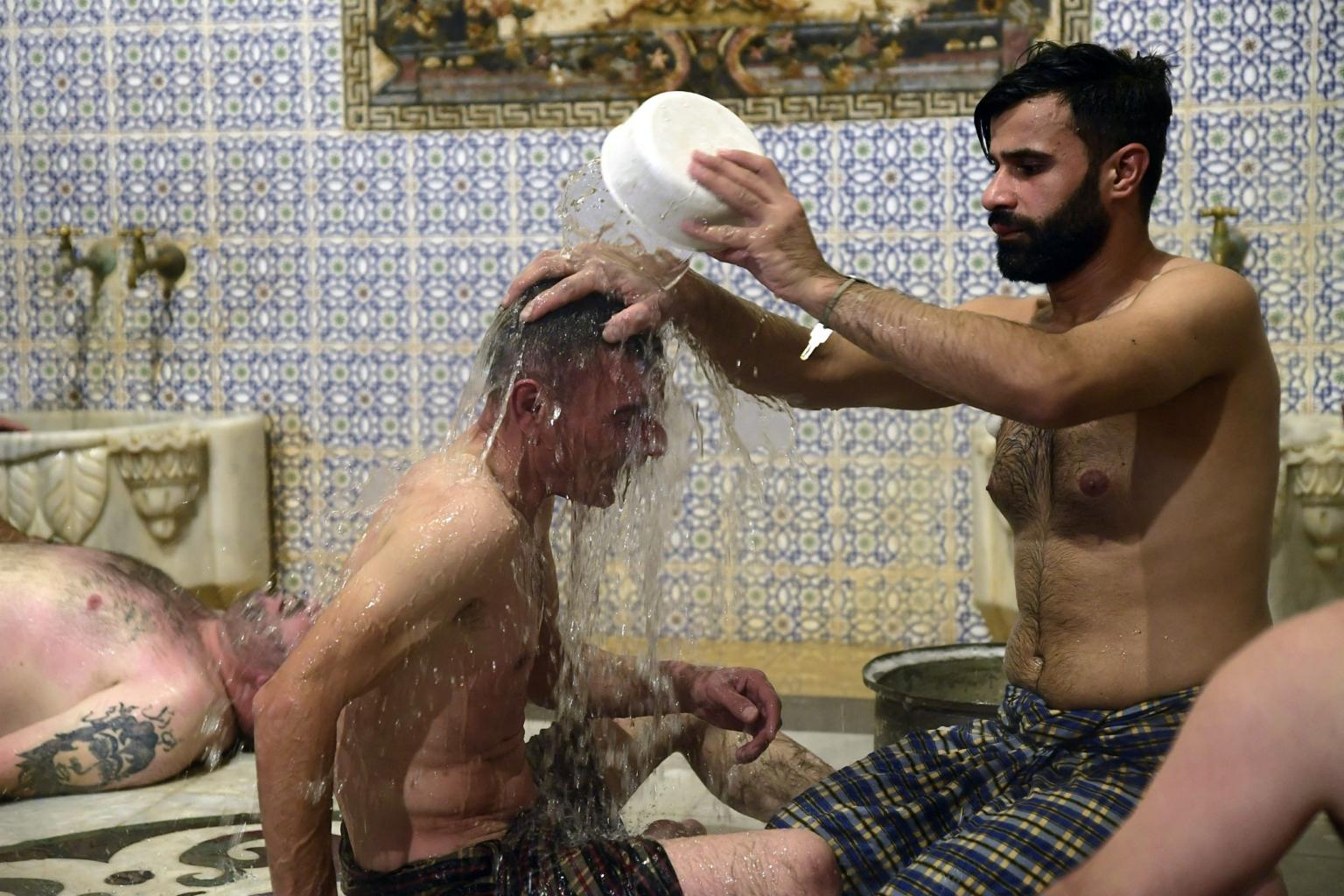 In an adjoining area, masseurs use soap and loofahs to scrub clean clients lying flat on the marble floor, as restrictions against the coronavirus pandemic seem a world away.