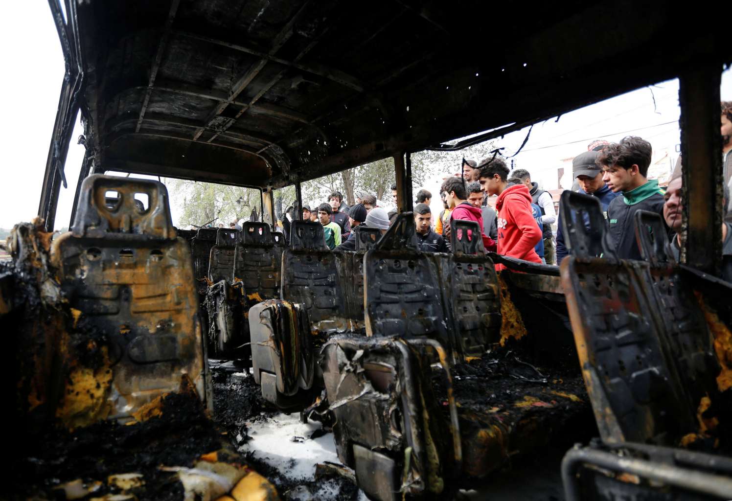 Nine of the victims were women in a passing minibus, whose charred bodies were visible inside the burnt-out remains of the vehicle. Blood stained the ground nearby.