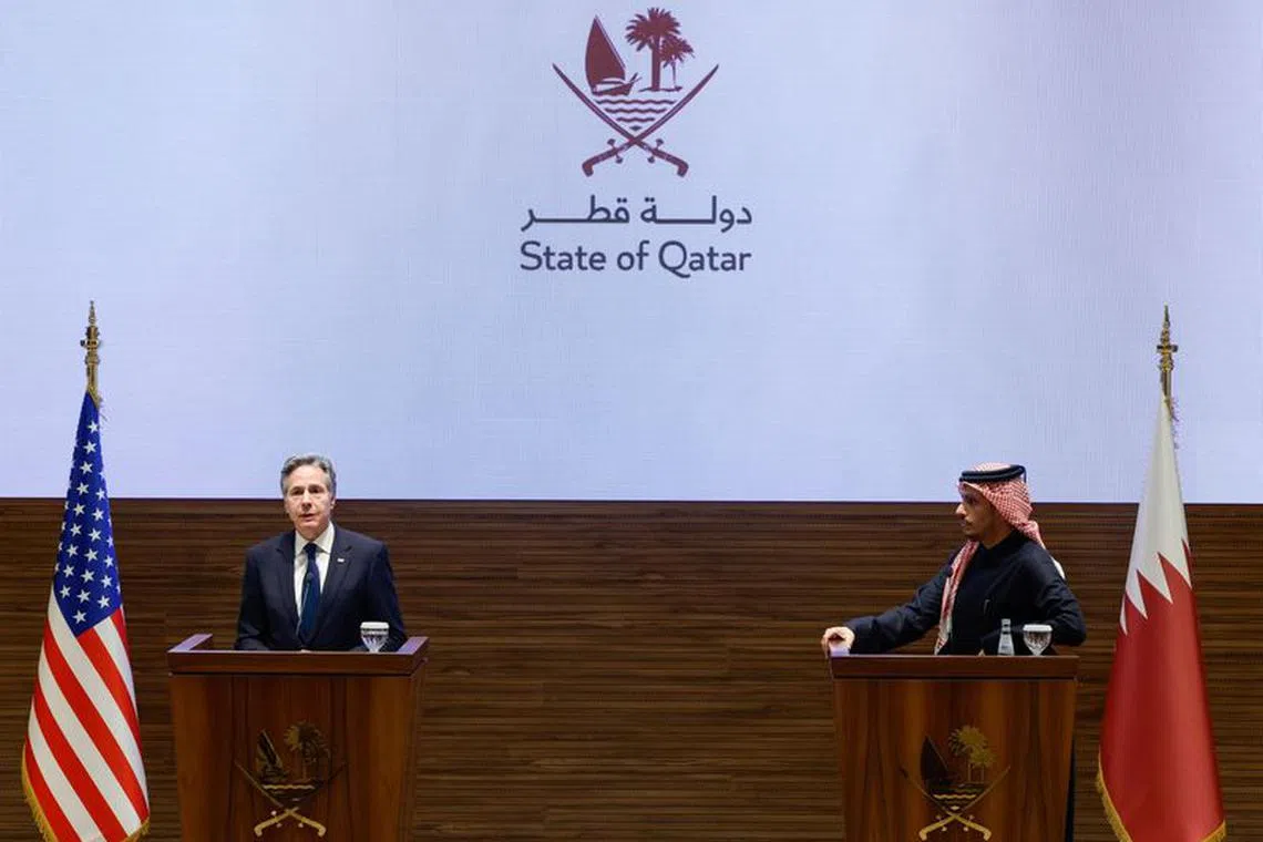 US Secretary of State Antony Blinken and Qatari Prime Minister Sheikh Mohammed bin Abdulrahman Al Thani at a press conference in Doha, Qatar, on Jan 7.