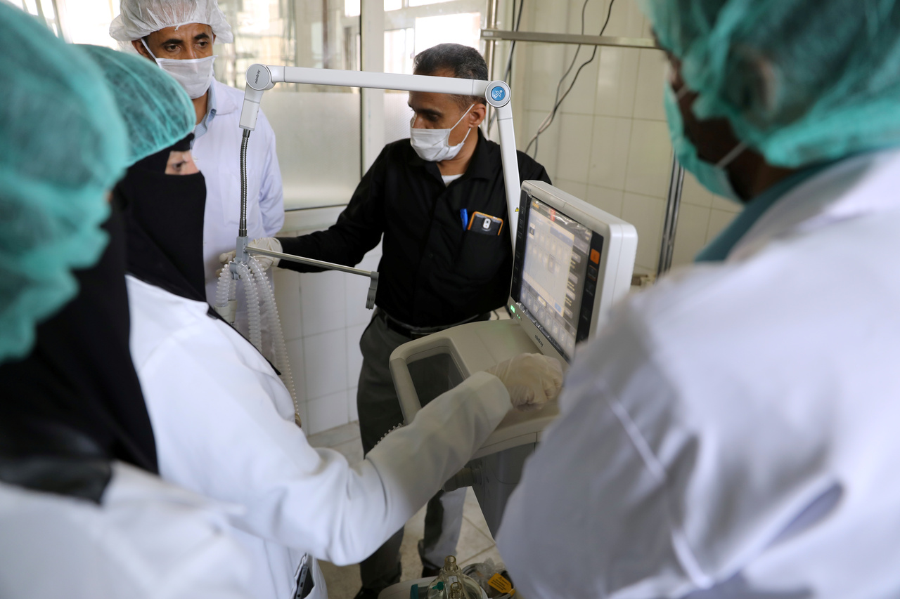 Nurses receive training on using ventilators at a hospital in Sanaa, Yemen.