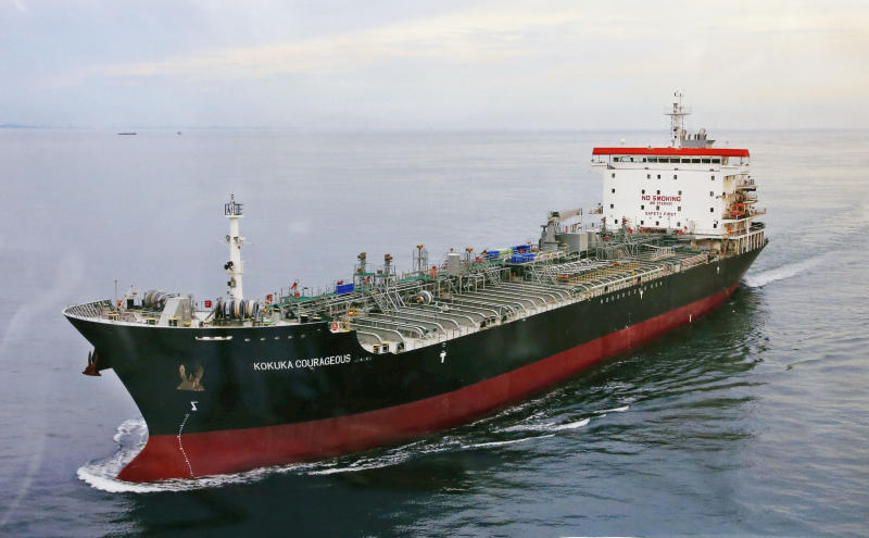 The tanker Kokuka Courageous, which was one of two ships that came under attack while in Gulf waters, arrived at Sharjah, UAE, on June 16, 2019.
