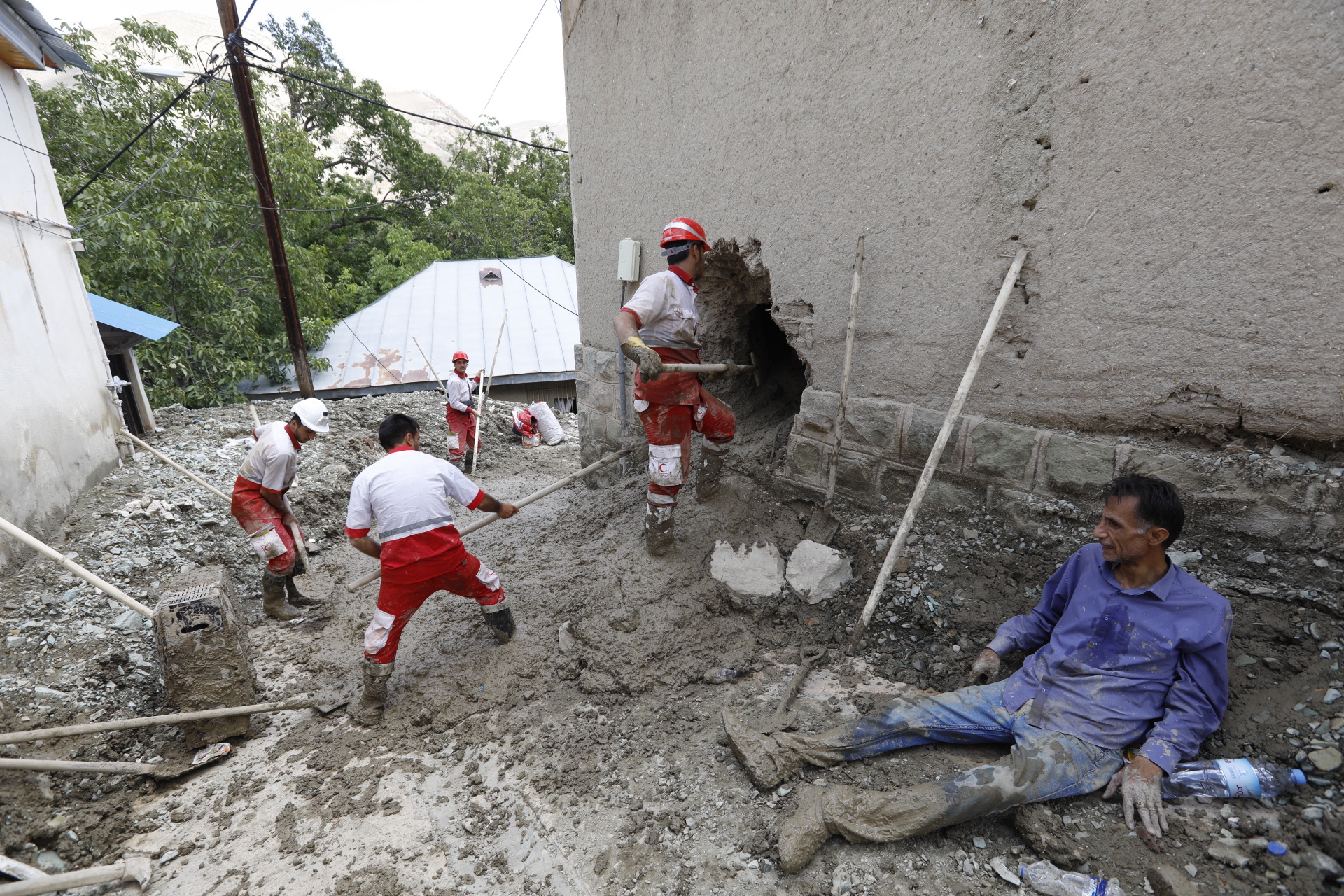 Videos and pictures posted by Iranian media and on social media showed houses and cars surrounded by grey mud, and people trying to recover their belongings.