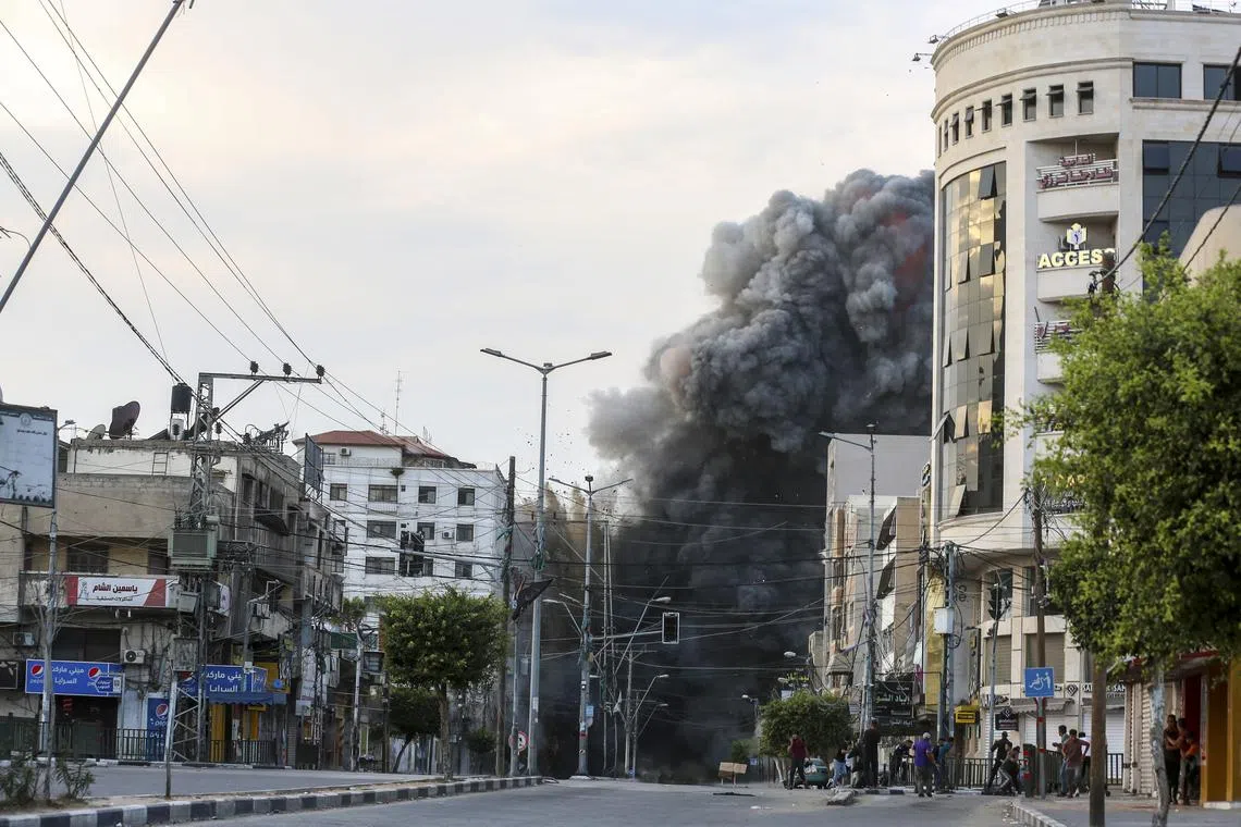 Smoke over a neighbourhood bombed in Gaza City, Gaza Strip, on Oct 8, 2023.