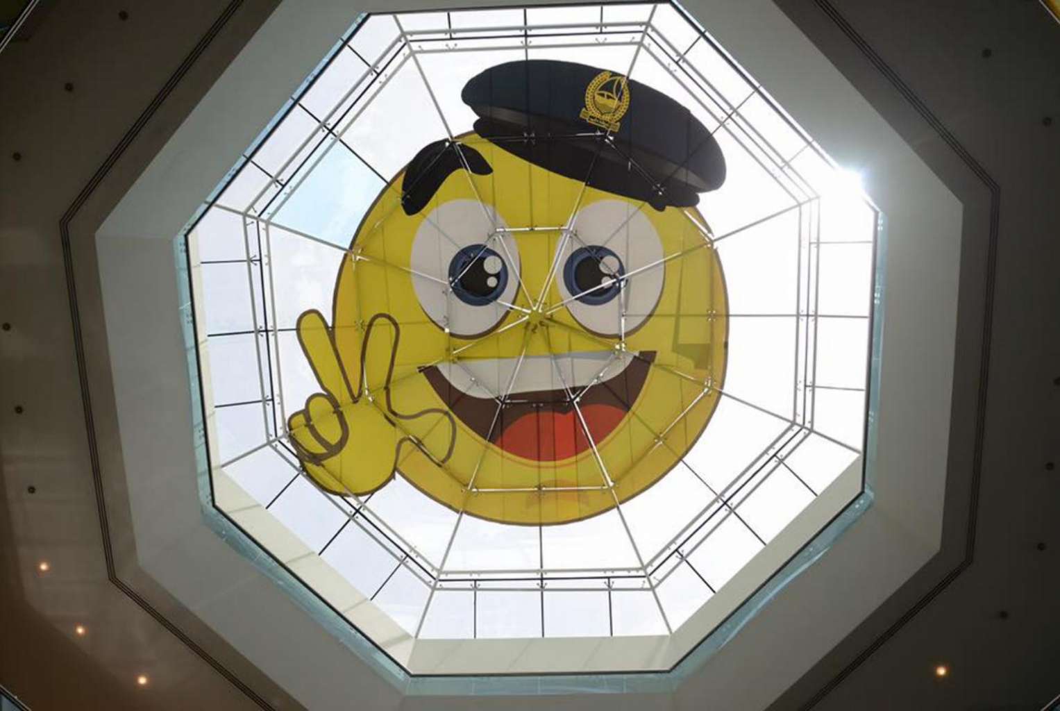 Officers in the Middle Eastern megacity unveiled the emoji-like symbol on the glass dome at the top of Al Muraqqabat Police Station on July 19, 2017.