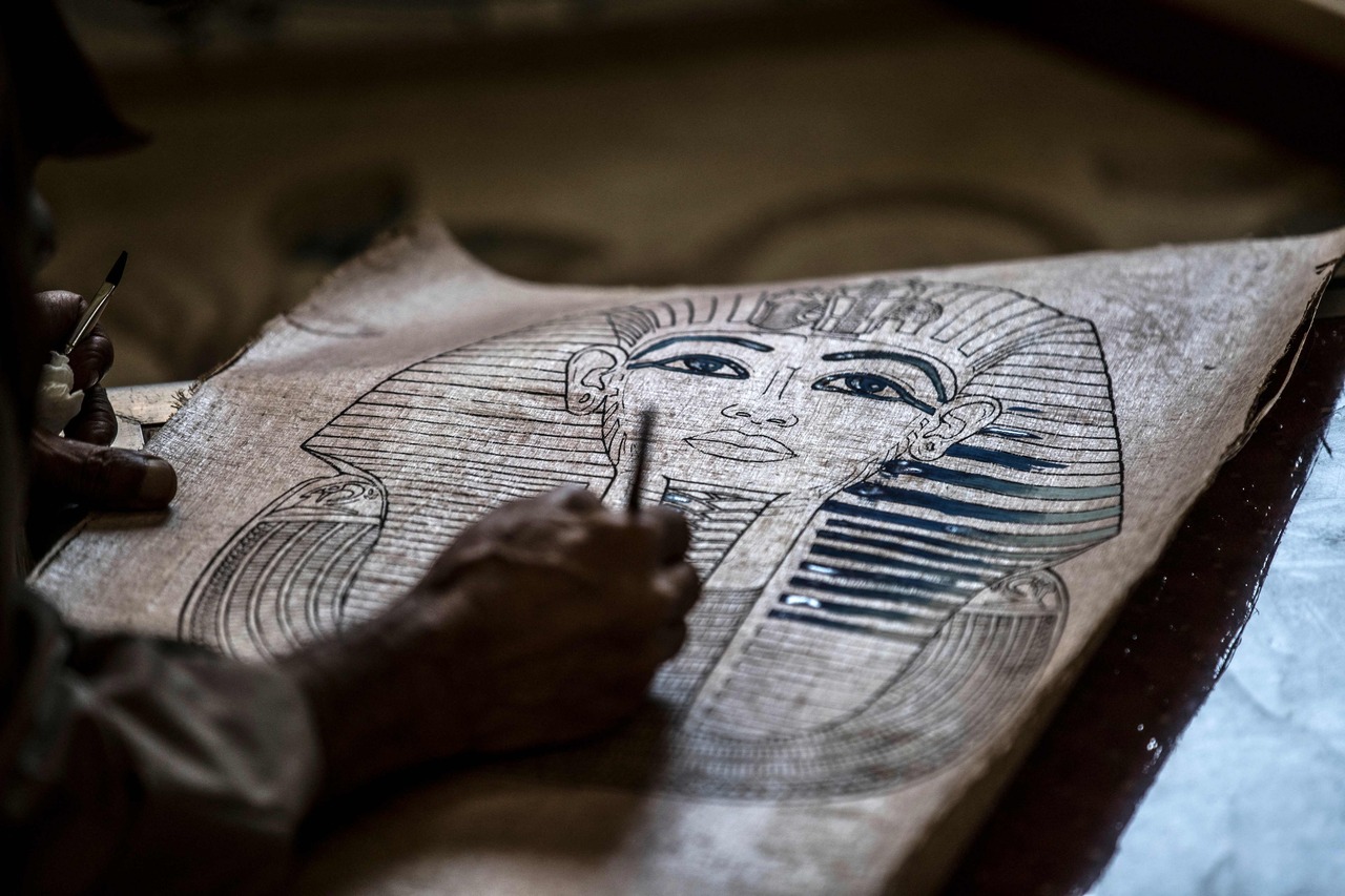 Once used by ancient Egyptians as writing paper, local artists now decorate the papyrus with hieroglyphics, Arabic calligraphy and representations from antiquity and nature to create souvenirs for eager visitors.