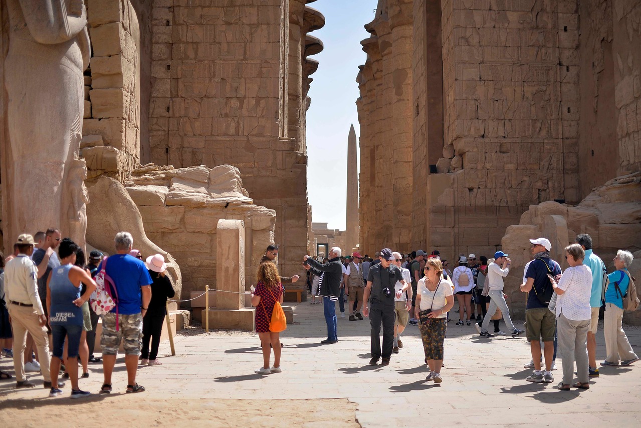 Tourists visit the Karnak Temple Complex in Egypt's southern city of Luxor on March 8, 2020.