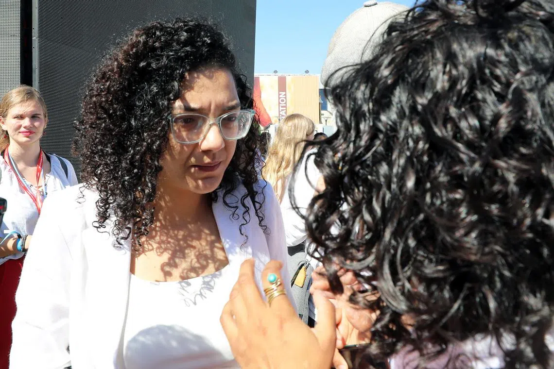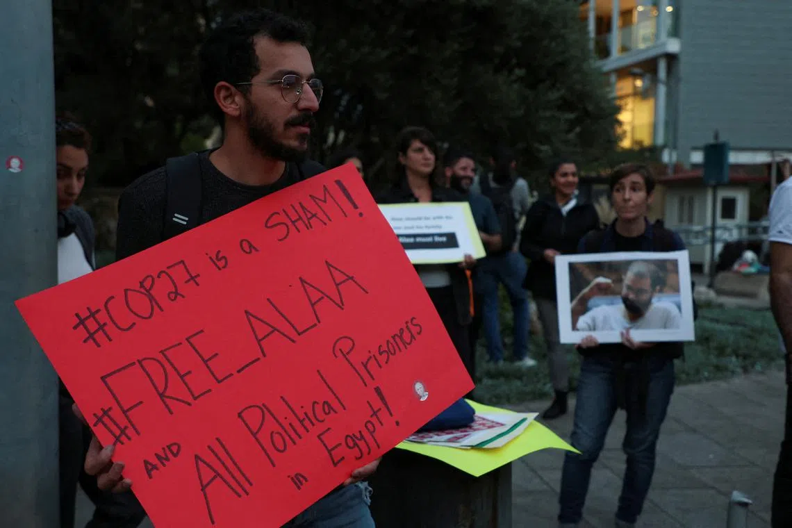 Ms Sanaa Seif (left), attends a climate activists protest in Sharm El-Sheikh, Egypt, on Nov 10, 2022.