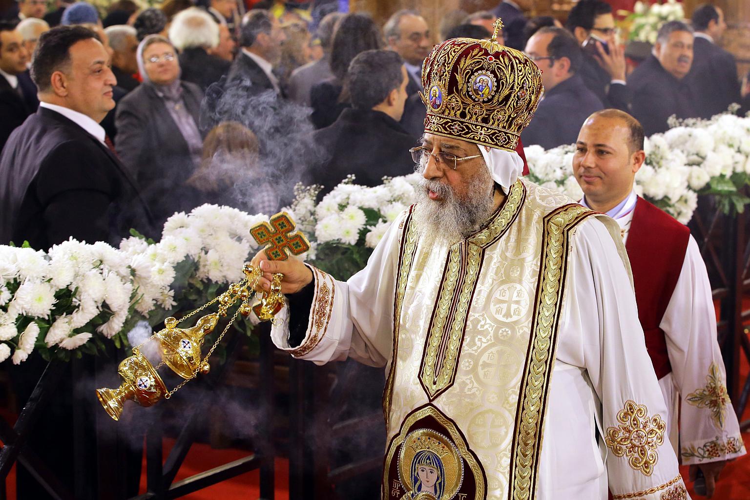 Military and political officials also attended the mass, conducted in a mix of ancient Greek and Coptic.