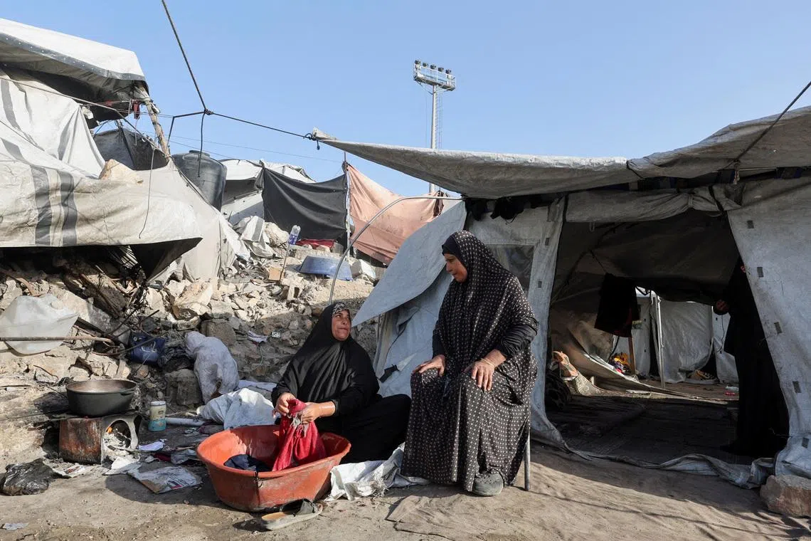 Displaced Palestinians at a makeshift tent in Gaza on Feb 2.