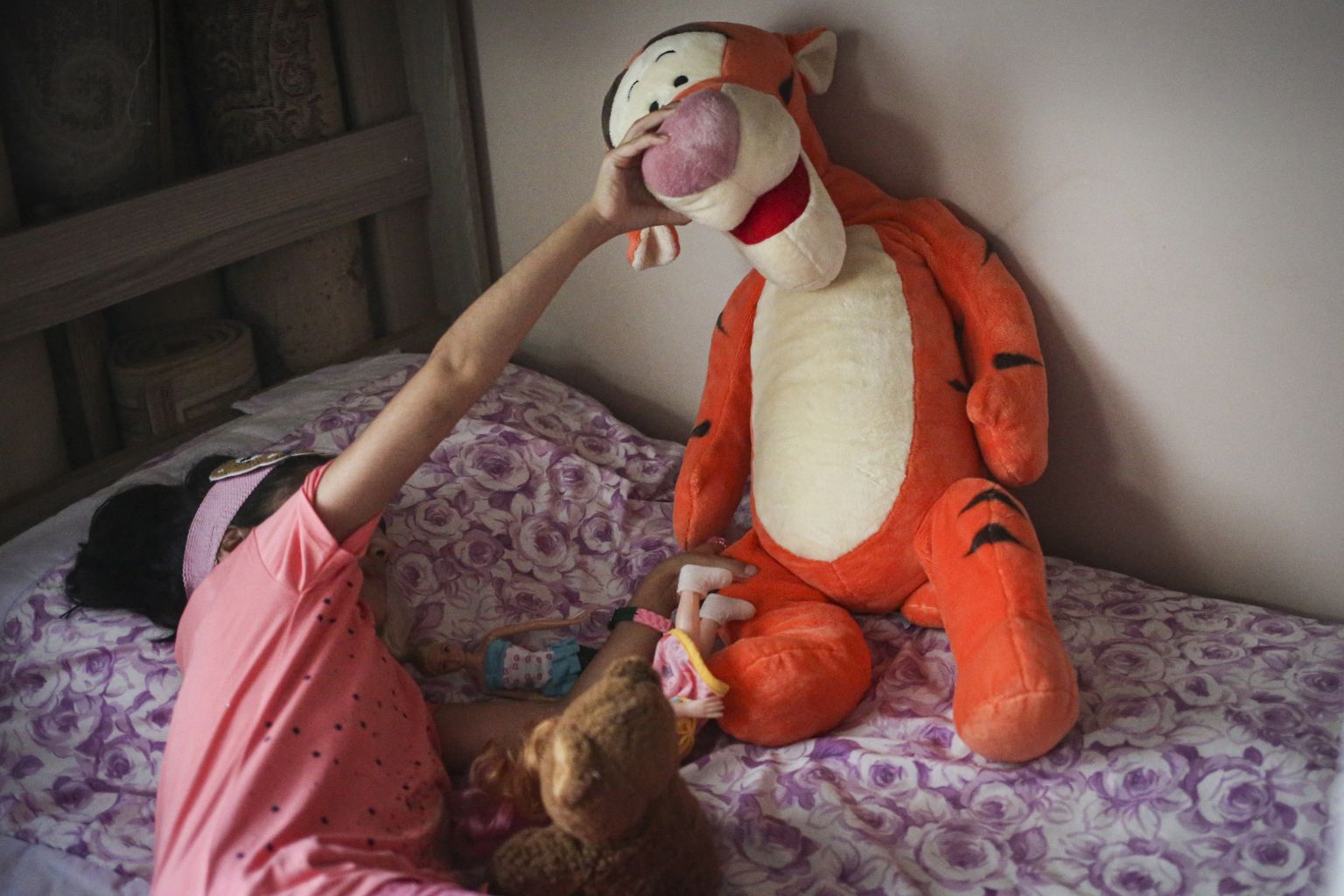 Nisa, nine, plays with toys at her family's home in Istanbul.