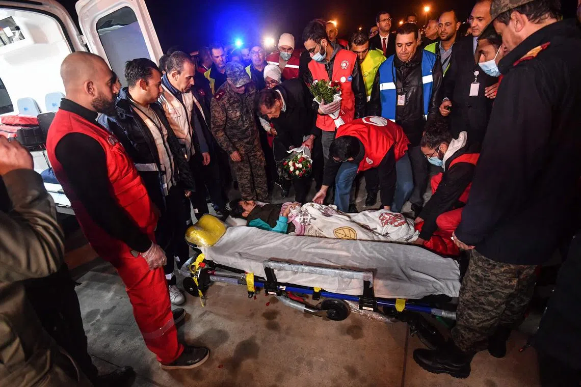A wounded Palestinian from the Gaza Strip is transported into an ambulance upon arrival at Tunis-Carthage airport on Dec 3.