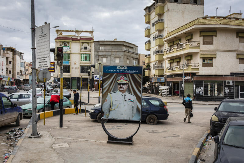 A billboard depicting General Khalifa Hifter in Benghazi, on Jan 19, 2020.