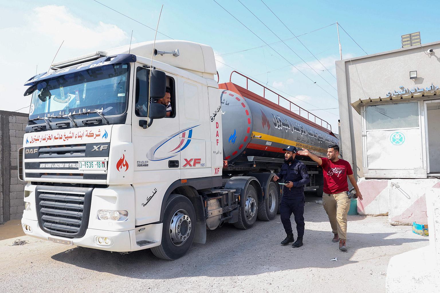 An AFP journalist at the goods crossing to southern Gaza saw trucks loaded with fuel enter the enclave, ending a severe shortage which prompted the only power station there to shut down on Saturday.