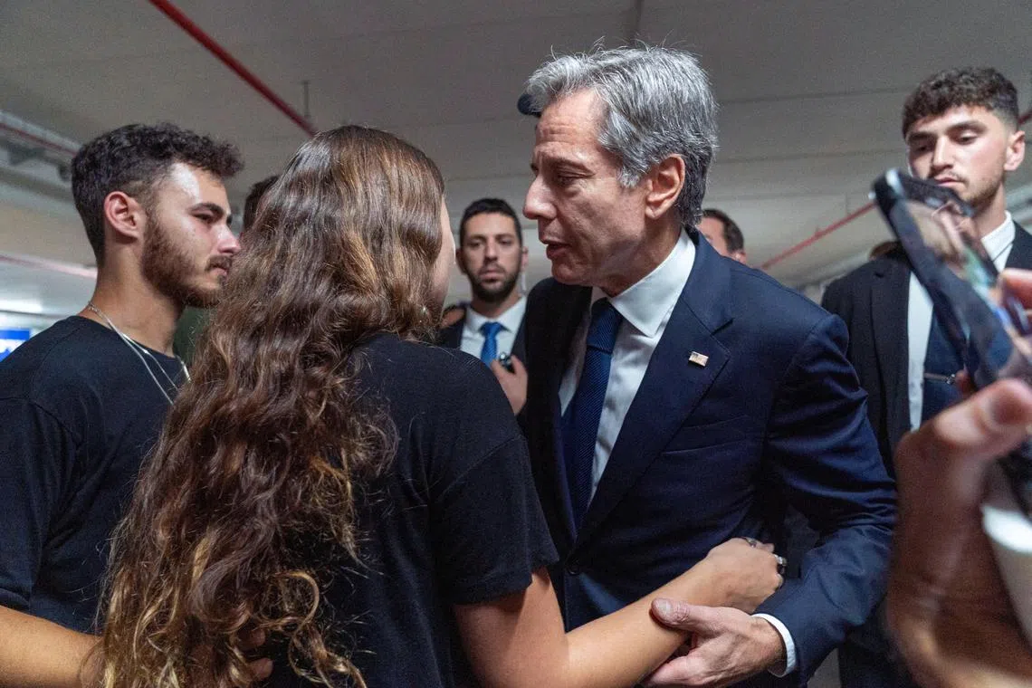 US Secretary of State Antony Blinken visits a donation centre for victims of the Hamas attacks from Gaza, in Tel Aviv, Israel, on Oct 12, 2023.