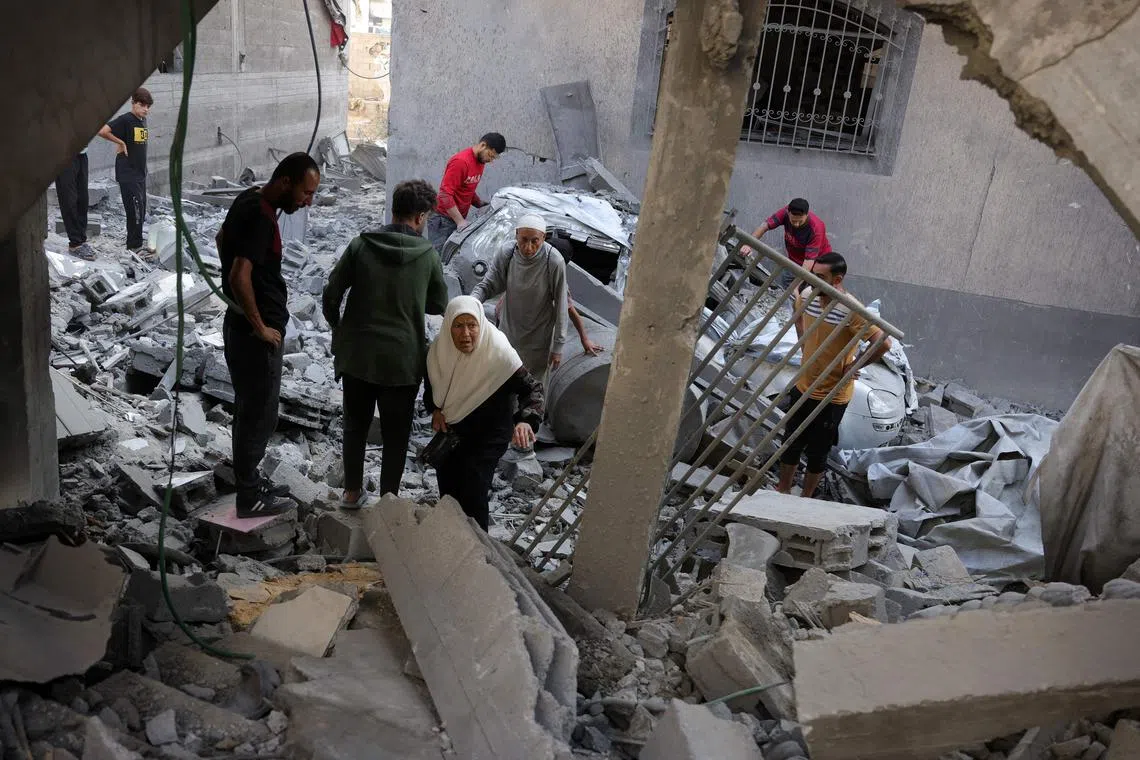Palestinians checking the destruction following Israeli strikes in the northern Gaza Strip on May 22.
