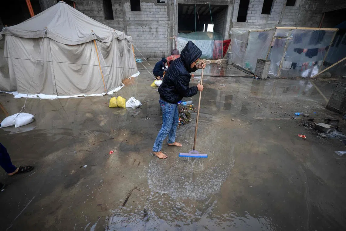 Winter rains have exacerbated the dire conditions for Palestinians displaced by the violence.