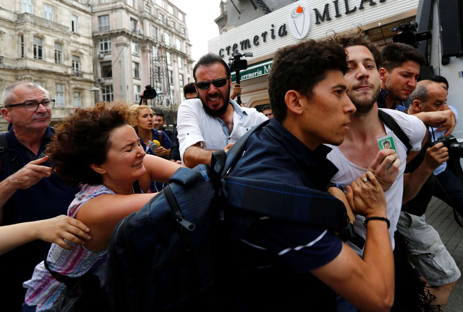 Plainclothes police officers detain a foreign national as LGBT rights activists try to gather for a pride parade, which was banned by the governorship, in Istanbul, Turkey, on June 26, 2016. Volker Beck, a German Greens party lawmaker, is seen on the left.