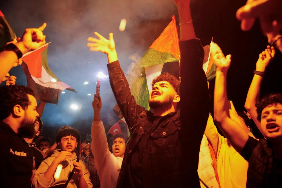 Demonstrators in Istanbul during a rally in solidarity with Palestinians on Oct 7.