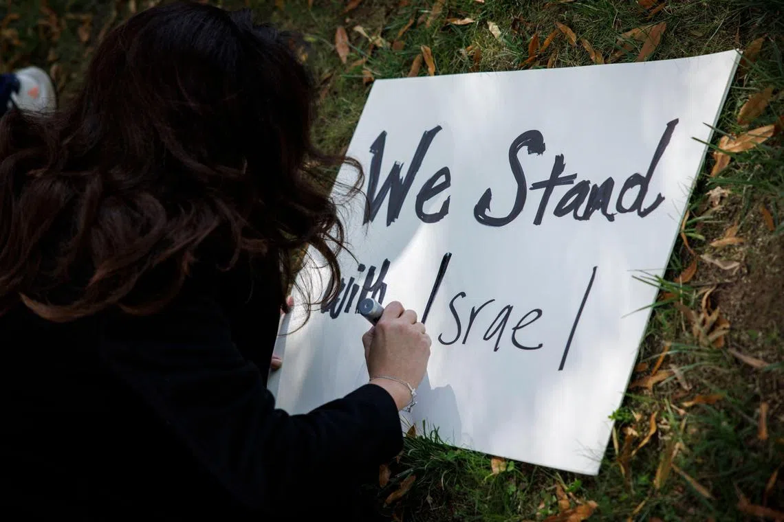 A pro-Israel rally outside the Israeli embassy in Washington, DC on Oct 8.