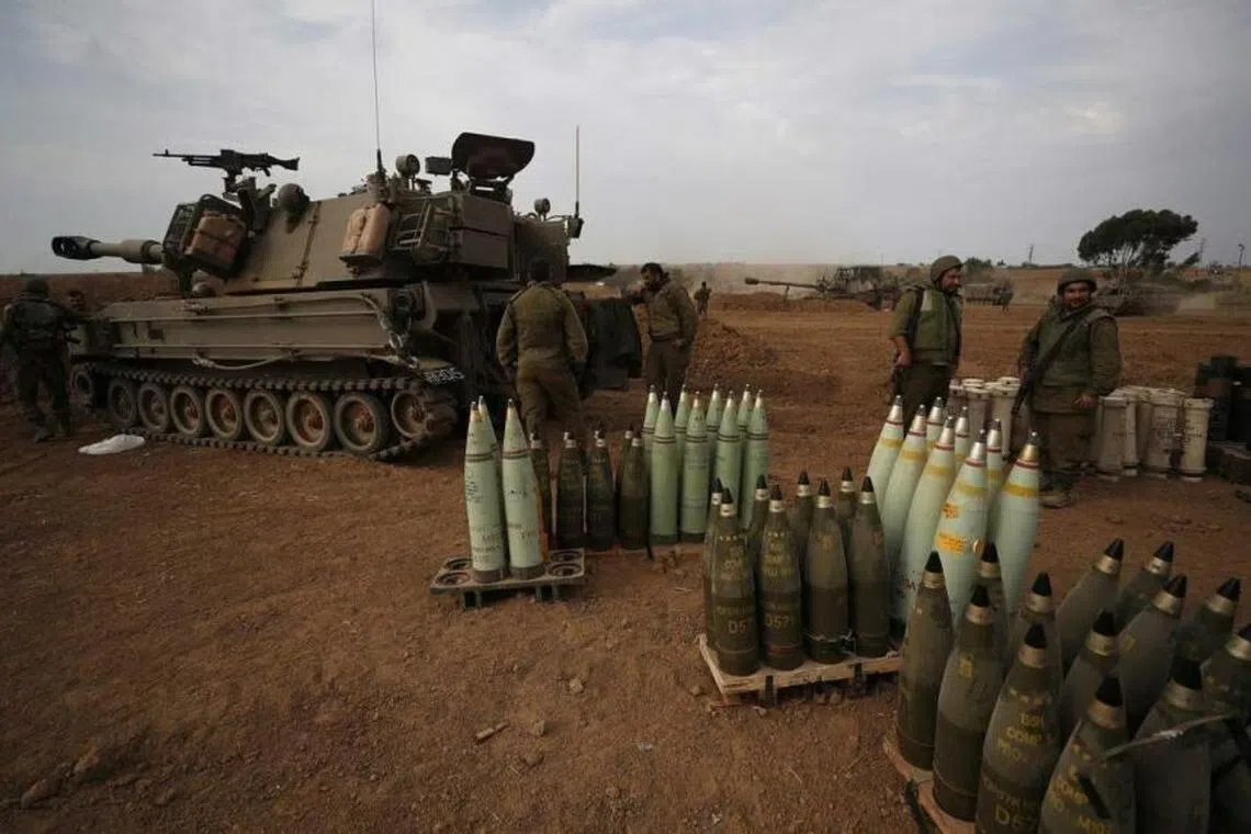 An Israeli artillery unit at an area along the border with Gaza, southern Israel, on Oct 9.