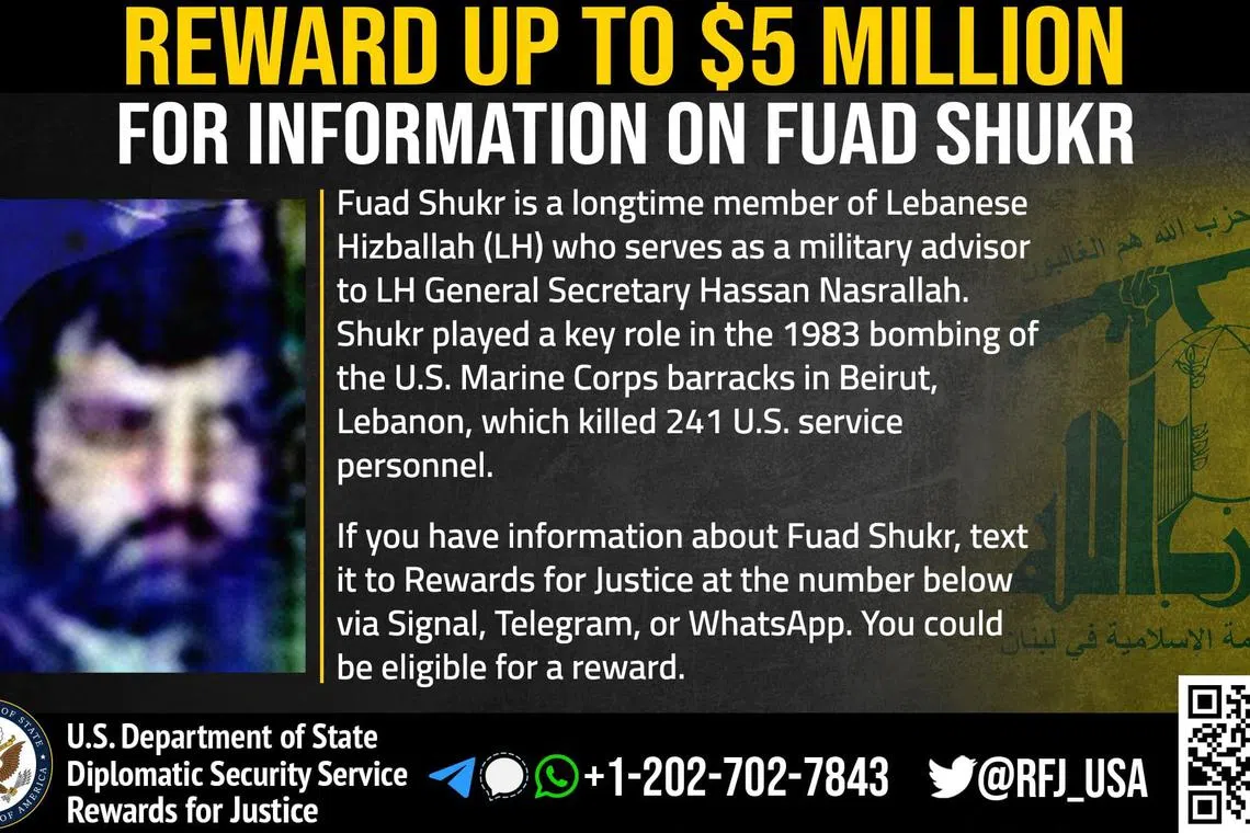 In 2017, the US Treasury offered US$5 million for information on Shukr, and said he had “a central role” in the deadly 1983 bombing of the US Marine Corps barracks in Beirut.