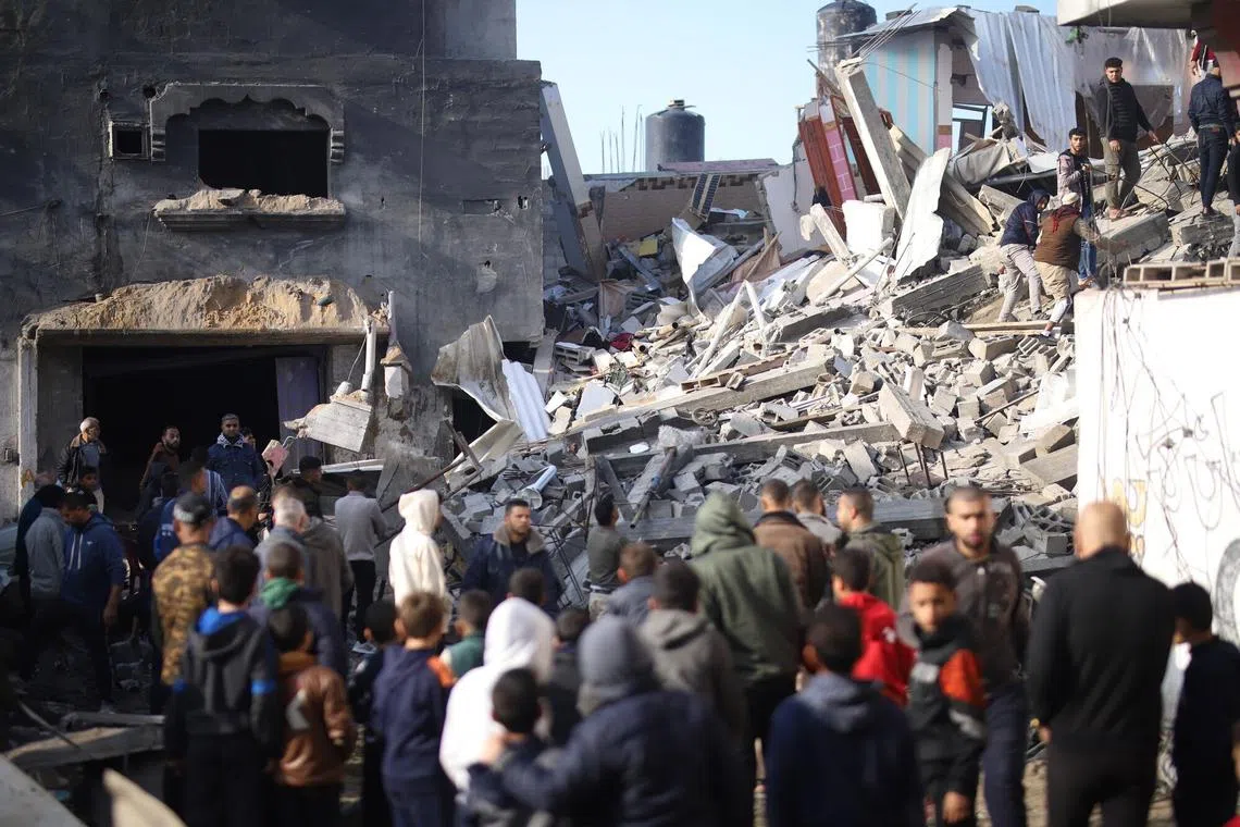In an example of the civilian toll in Gaza, a strike killed 19 people from two local families as they slept at home in the town of Rafah in southern Gaza on Dec 19, including women, children and two babies, Gazan health authorities said. The bomb left a deep crater and rubble where a large building had stood.