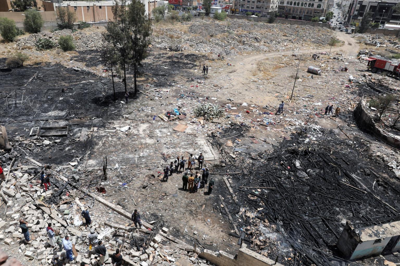 The site of a Saudi-led air strike in Sanaa, Yemen, on March 26, 2022.