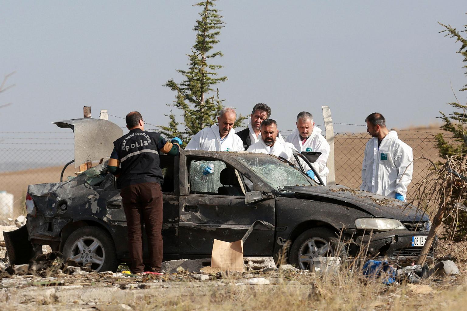 Police forensic officers at the scene of a suicide bombing in Haymana, in the outskirts of the capital Ankara, on Oct 8, 2016.