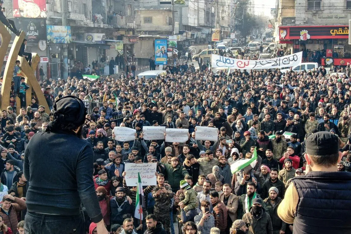 The demonstration comes after the Syrian, Turkish and Russian defence ministers met in Moscow on Wednesday for the first time since the Syrian conflict broke out over a decade ago.