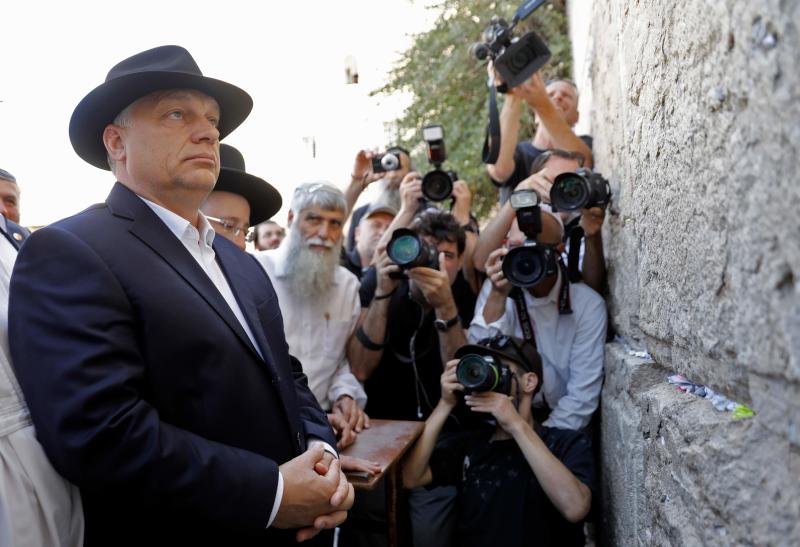 Hungarian Prime Minister Viktor Orban visits the Western Wall in Jerusalem's Old City, on July 20, 2018.